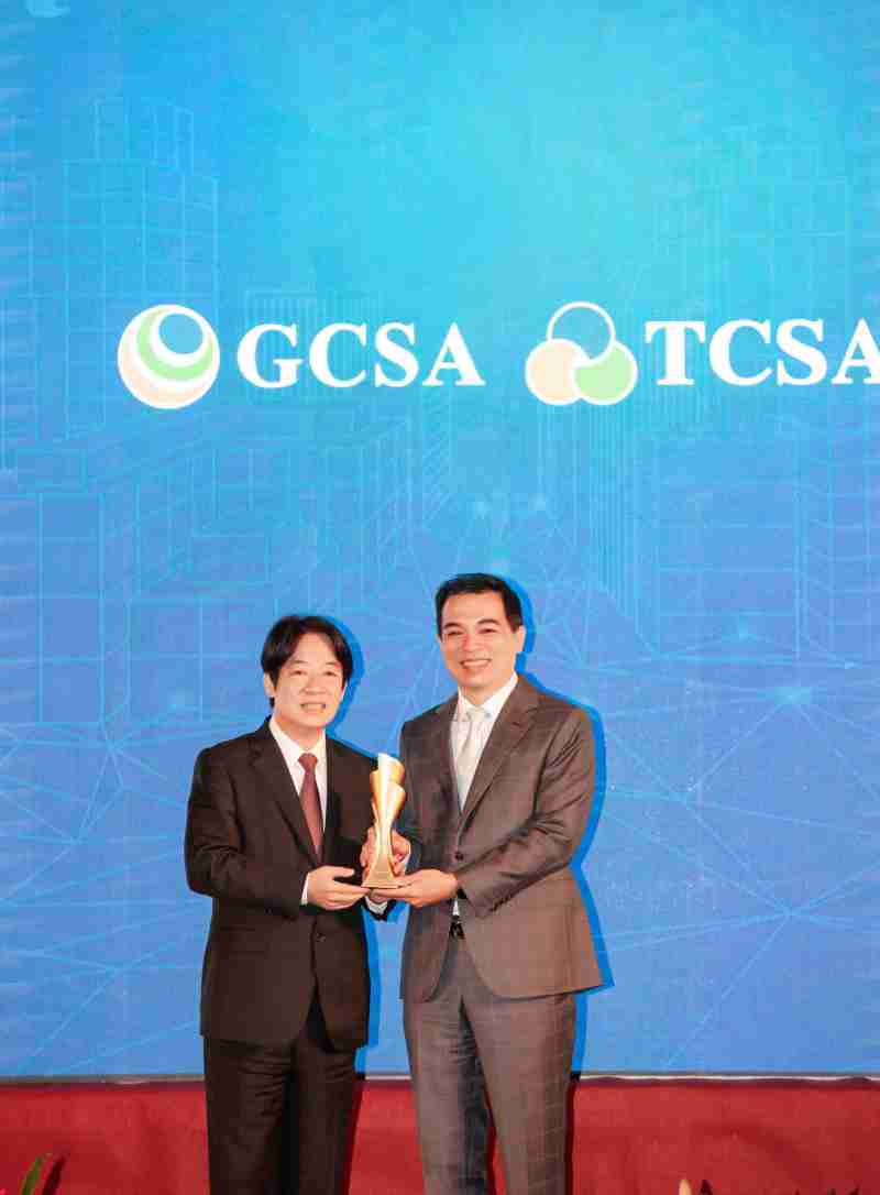 达全方位永续表现获全球永续奖及台湾永续奖肯定,,,,由副总统赖清德颁奖 (左),,人生就是博总经理柯富仁 (右) 代表领奖