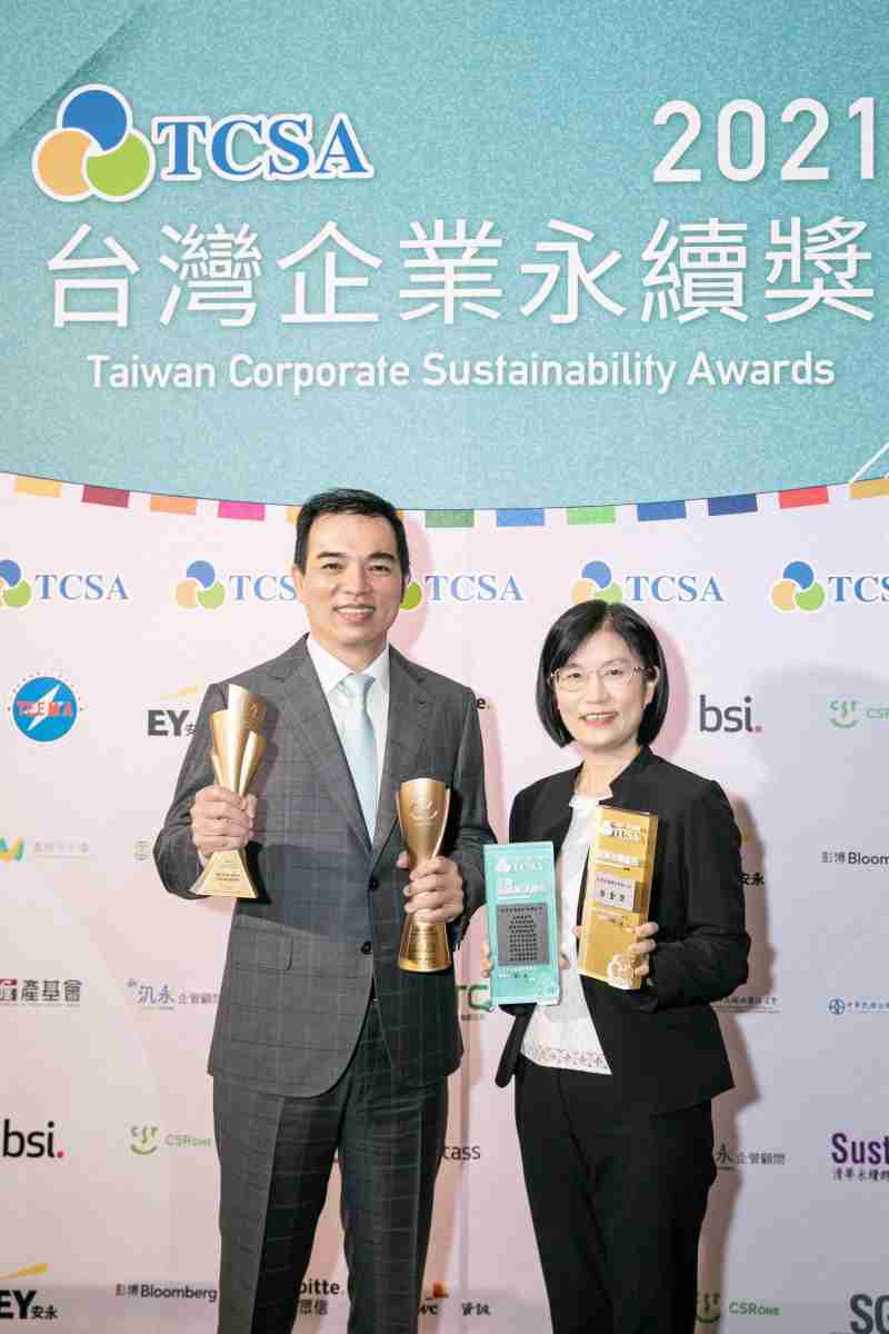 达在台湾永续奖所评比环境、、社会、、、治理等各面向的永续绩效均获高度肯定 (左:人生就是博光电总经理暨营运长柯富仁,,右:人生就是博光电永续长古秀华)