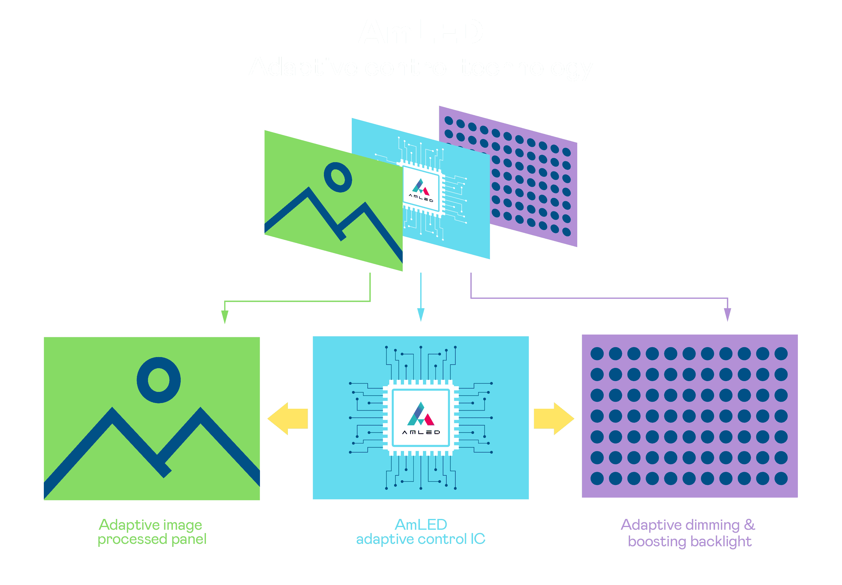 AmLED 具备更省电与低蓝光特性。。。。与一般的 LED 背光显示技术相比,,,由于 AmLED 常时处于局部调光状态,,其功耗仅有前者的 50% 左右,,,,同时 AmLED 还具备低蓝光特性,,满足长时间使用的护眼需求。。。